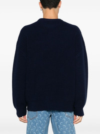 logo-patch sweater Highlights - Navy blue - Merino wool - Knitted construction - Logo patch at the chest - Crew neck - Drop shoulder - Long sleeves - Ribbed cuffs and hem - When buying this unisex item, keep in mind that it is graded in standard men's sizing. Imported Composition Merino 100% SIZE & FIT Model measurements Height 5 ft 10 in(1.77 m) Bust/Chest 32.28 in(82 cm) Hips 35.03 in(89 cm) Waist 25.19 in(64 cm) FittingInformation This piece is unisex – if you usually select men's sizing expect a loose fit throughout; if you usually select women's sizes, expect an oversized fit Made with a heavyweight knit, this piece offers some stretch