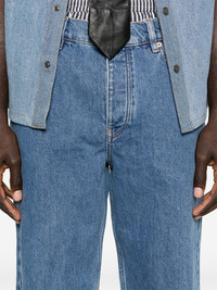 logo-print jeans Highlights - Blue - Logo print - Button fastening - Five pockets - Belt loops - Tonal stitching Imported Composition Cotton 100% SIZE & FIT Model measurements Height 6 ft 2 in(1.87 m) Bust/Chest 36.41 in(92.5 cm) Hips 37 in(94 cm) Waist 29.52 in(75 cm) Washing instructions Machine Wash
