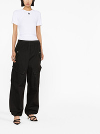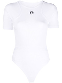 logo-print organic-cotton bodysuit Made from organic cotton, in tune with Marine Serre's eco-conscious approach to design, this basic bodysuit boasts the brand's signature crescent moon printed on the chest in contrasting black. The brand chose that symbol as its motif as it represents its values of hybridity and crossing boundaries. Highlights - White - Stretch organic cotton - Crew neck - Logo print at the chest - Logo patch to the rear - Short sleeves - Just a reminder that this piece must be tried on over your own garments. Made in United Kingdom Composition Organic Cotton 95%, Spandex/Elastane 5% SIZE & FIT Model measurements Height 5 ft 10 in(1.78 m) Bust/Chest 29.92 in(76 cm) Hips 34.64 in(88 cm) Waist 23.62 in(60 cm) Measurement CHEST 26.77 in(68 cm) SLEEVE LENGTH 9.44 in(24 cm) HIPS 25.19 in(64 cm) LENGTH 25.19 in(64 cm) Shoulder Width 7.87 in(20 cm) FittingInformation This piece fits true to size. We recommend you get your regular size Cut for a slim fit Made with a mid-weight stretch fabric Washing instructions Machine Wash