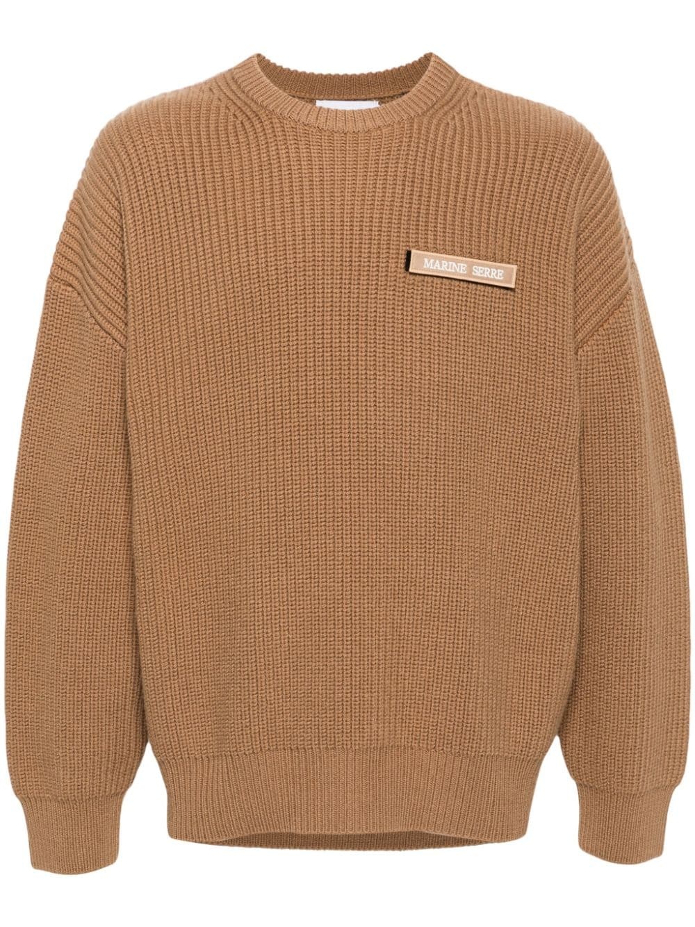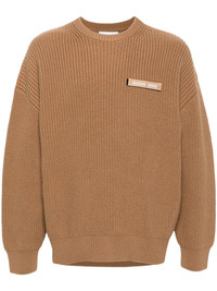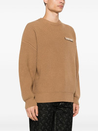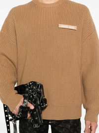 merino sweater Highlights - Camel brown - Merino wool - Ribbed knit - Logo patches to the front - Crew neck - Long sleeves - Ribbed cuffs and hem - When buying this unisex item, keep in mind that it is graded in standard men's sizing. Imported Composition Merino 100% SIZE & FIT Model measurements Height 6 ft 1 in(1.85 m) Bust/Chest 35.82 in(91 cm) Hips 37.79 in(96 cm) Waist 29.13 in(74 cm) FittingInformation This piece is unisex – if you usually select men's sizing expect a loose fit throughout; if you usually select women's sizes, expect an oversized fit Made with a midweight knit, this piece offers some stretch