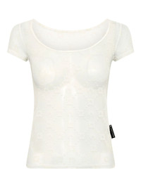 mesh top Highlights - White - Boat neck - Short sleeves Made in France Composition Recycled Polyamide 86%, Elastane 14%