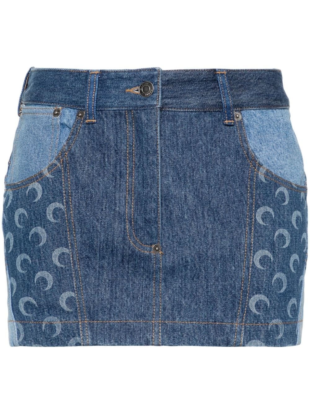 mini denim skirt Highlights - Navy blue - Cotton - Washed denim - Contrast stitching - Panelled design - Crescent moon print - Belt loops - Two rounded pockets to the sides - Coin pocket - Rivet detailing - Thigh-length - Logo patch to the rear - Concealed fly and button fastening Imported Composition Lining: Cotton 100% Outer: Cotton 100% SIZE & FIT Model measurements Height 5 ft 11 in(1.8 m) Bust/Chest 32.67 in(83 cm) Hips 36.22 in(92 cm) Waist 24.4 in(62 cm) FittingInformation This mini-length skirt is intended to be worn just below the waist Sturdy and hard-wearing, this denim piece offers no stretch This piece fits true to size – take your usual size