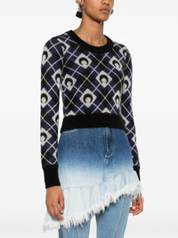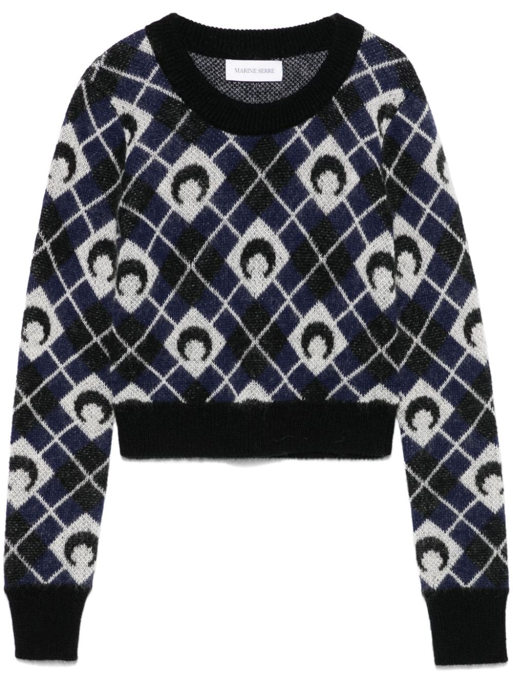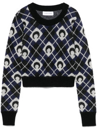Moon argyle-knit sweater Highlights - Black/white/navy blue - Mohair blend - Knitted construction - Brushed effect - Argyle check pattern - Moon jacquard - Ribbed crew neck - Long sleeves - Logo patch to the rear - Ribbed cuffs and hem - Cropped Imported Composition Mohair 50%, Polyamide 32%, Merino 18% SIZE & FIT Model measurements Height 5 ft 10 in(1.77 m) Bust/Chest 33.07 in(84 cm) Hips 37 in(94 cm) Waist 24.8 in(63 cm) FittingInformation Designed for a slim fit that sits just away from the body offering a close yet comfortable fit The ribbed hem offers a close, comfortable fit Made with a midweight knit, this piece offers some stretch