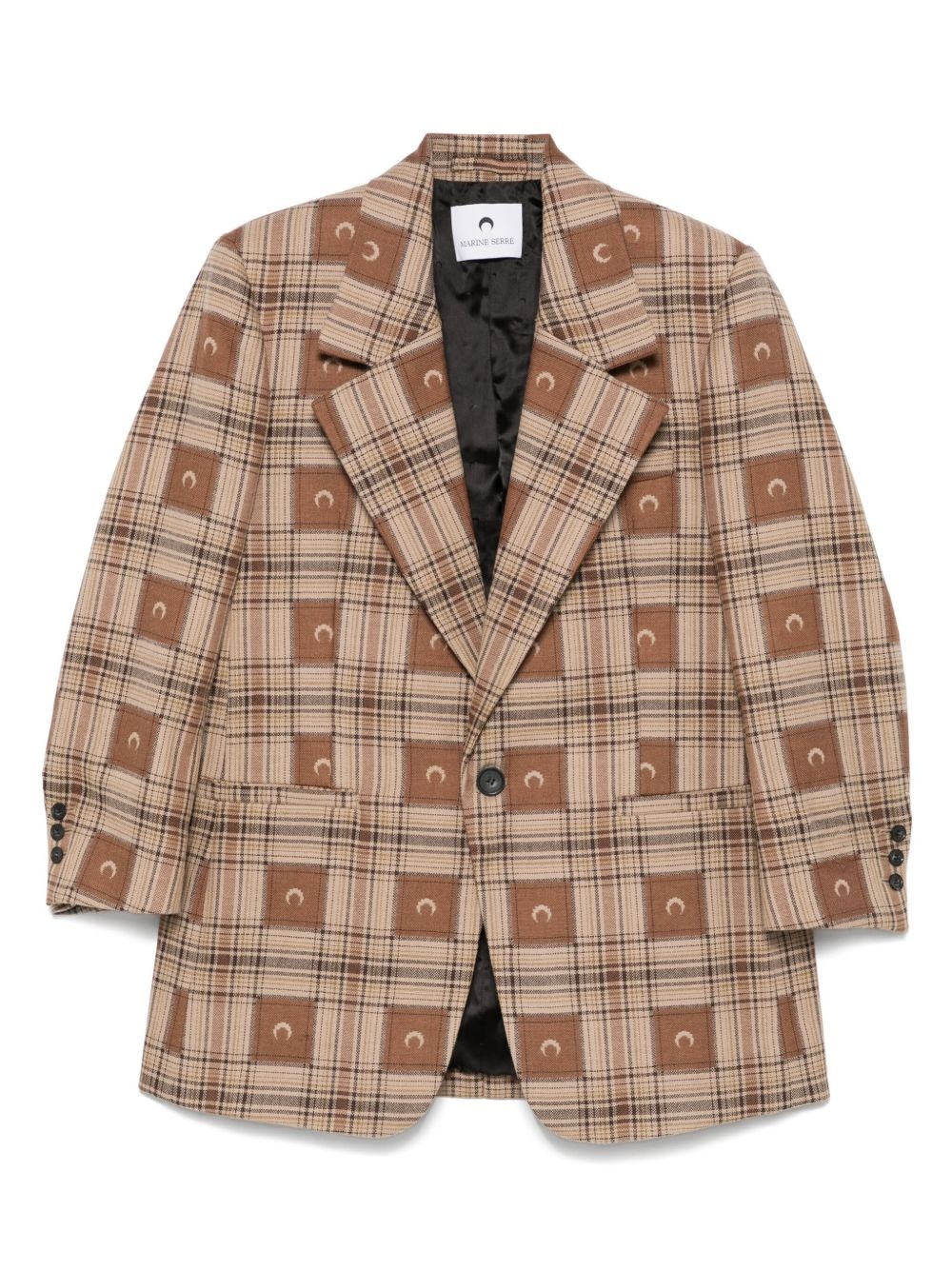 Moon-checked jacquard blazer Highlights - Beige - Front button fastening - Chest welt pocket - Two side welt pockets - When buying this unisex item, keep in mind that it is graded in standard men's sizing. Made in Italy Composition Lining: Viscose 43% Outer: Wool 100%