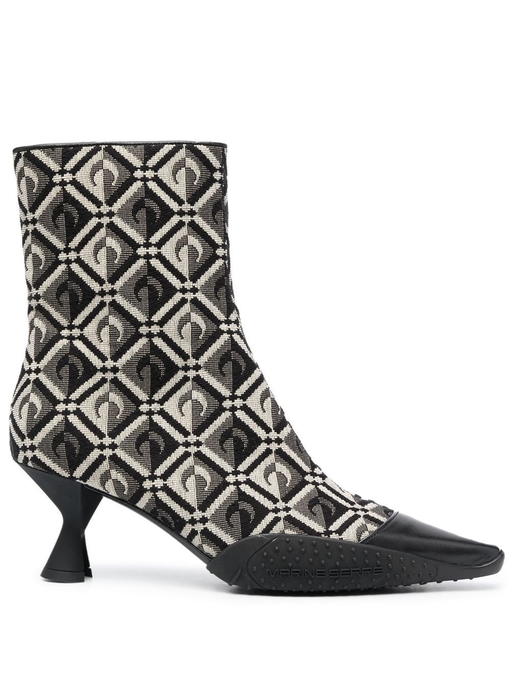 Moon Diamant 65mm ankle boots These Marine Serre boots feature a jacquard iteration of the Moon Diamant motif - a take on the designer's Crescent Moon signature. They're embossed with logo detailing at the sides for an even more recognisable finish. Imported Composition Lining: Calf Leather 100% Outer: Calf Leather 100%, Fabric 100% Sole: Calf Leather 100%, Rubber 100% SIZE & FIT Measurement CIRCUMFERENCE 9.44 in(24 cm) HEEL 2.55 in(6.5 cm) HEIGHT 5.9 in(15 cm)