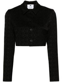 Moon Diamant-jacquard cropped jacket Highlights - Black - Interlock twill weave - Moon diamant pattern - Patterned jacquard - Dart detailing - Straight-point collar - Front button fastening - Long sleeves - Straight hem - Cropped - Logo-jacquard lining Made in Italy Composition Outer: Viscose 79%, Wool 20%, Spandex/Elastane 1% Lining: Viscose 100% SIZE & FIT Model measurements Height 5 ft 9 in(1.76 m) Bust/Chest 31.88 in(81 cm) Hips 35.43 in(90 cm) Waist 24.8 in(63 cm) FittingInformation Designed for a slim fit that sits just away from the body offering a close yet comfortable fit Cropped in length Made from a midweight fabric This piece fits true to size – take your usual size