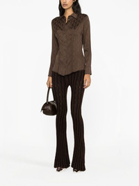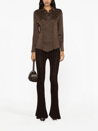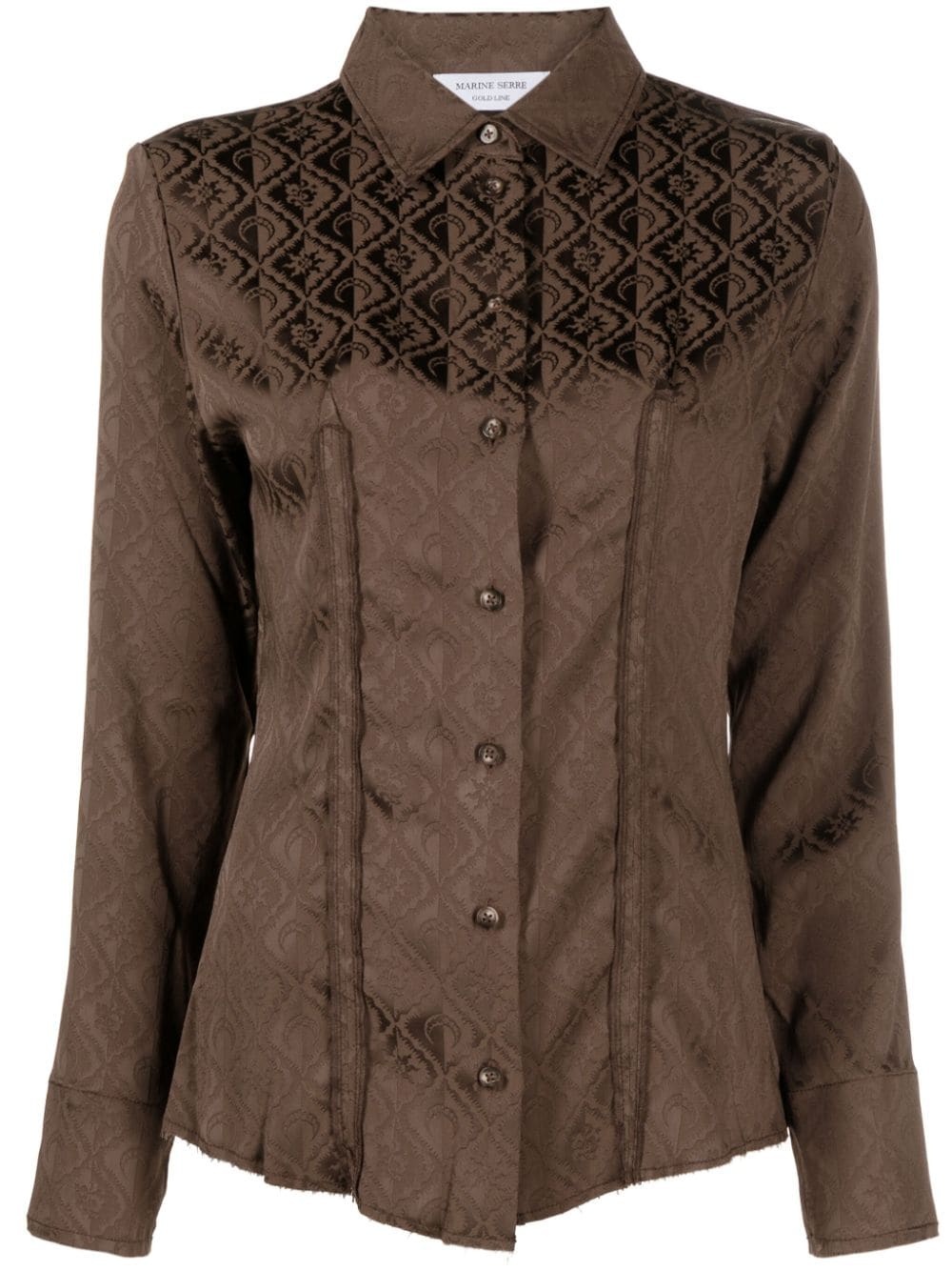 Moon Diamant jacquard satin shirt Marine Serre puts a branded spin on shirting with this design. Fitted with a classic collar, it plays host to the signature Moonagram print in a gradient effect. Highlights - Brown - Stretch-design - Signature moonogram pattern - Gradient effect - Classic collar - Front button fastening - Long sleeves Imported Composition Acetate 64%, Viscose 35%, Elastane 1% SIZE & FIT Model measurements Height 5 ft 10 in(1.78 m) Bust/Chest 31.49 in(80 cm) Hips 35.03 in(89 cm) Waist 23.62 in(60 cm) FittingInformation Designed for a slim fit that sits just away from the body offering a close yet comfortable fit Made from a midweight fabric This piece fits true to size – take your usual size Washing instructions Hand Wash