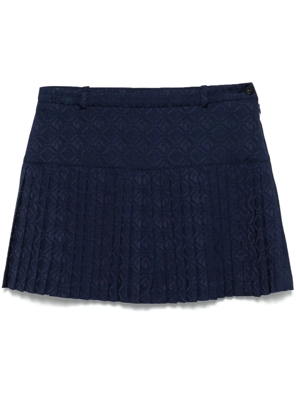 Moon Diamond-jacquard plaetd mini skirt Highlights - Navy blue - All-over moon diamond jacquard - Fully pleated - Concealed side zip fastening - Side button fastening - Belt loops - Logo plaque to the back - Partial lining - Thigh-length Made in Italy Composition Lining: Viscose 100% Outer: Viscose 79%, Wool 20%, Spandex/Elastane 1%