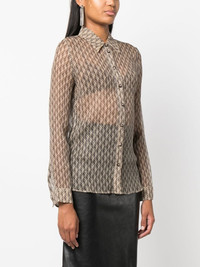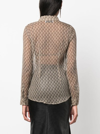 Moon Diamant silk shirt Crafted from silk, this shirt by Marine Serre exhibits the signature Moon Diamant pattern -- a retro-inspired version of the iconic crescent moon motif. It is cut to a see-through relaxed silhouette that speaks to the house's confident style. Highlights - Light brown - Silk - Semi-sheer construction - All-over graphic print - Pointed flat collar - Front button fastening - Long sleeves - Buttoned cuffs - Curved hem Imported Composition Silk 100% SIZE & FIT Model measurements Height 5 ft 11 in(1.8 m) Bust/Chest 30.7 in(78 cm) Hips 35.03 in(89 cm) Waist 24.4 in(62 cm) FittingInformation Designed for a slim fit that sits just away from the body offering a close yet comfortable fit Made from a lightweight non-stretch fabric This piece fits true to size – take your usual size