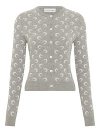moon-jacquard cardigan Highlights - Misty grey - Crescent moon pattern - Button fastening - Long sleeves - Ribbed hem Made in Italy Composition Viscose 50%, Virgin Wool 50% Washing instructions Read Manufacturer Guidelines