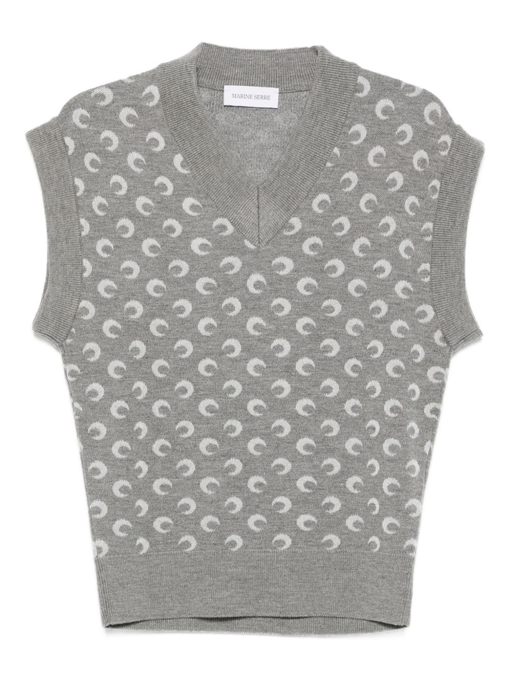 moon-jacquard V-neck vest Highlights - Misty grey - V-neck - Sleeveless - Crescent moon pattern - Textured panel - Jacquard weave Made in Italy Composition Viscose 50%, Virgin Wool 50% SIZE & FIT Model measurements Height 5 ft 11 in(1.8 m) Bust/Chest 31.49 in(80 cm) Hips 36.61 in(93 cm) Waist 24.4 in(62 cm) Washing instructions Hand Wash