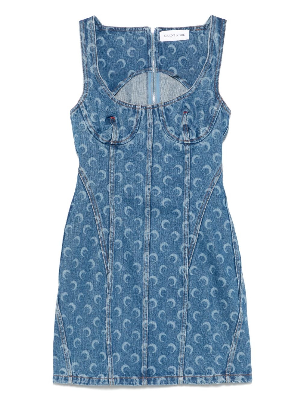 Moon Laser denim mini dress Highlights - Indigo blue - Rear zip fastening - Square neck - Thin shoulder straps - Straight hem Made in Italy Composition Outer: Cotton 100% Lining: Recycled Polyamide 78%, Elastane 22% SIZE & FIT Model measurements Height 5 ft 11 in(1.8 m) Bust/Chest 31.49 in(80 cm) Hips 35.82 in(91 cm) Waist 24.8 in(63 cm) FittingInformation Designed for a close fit throughout Sturdy and hard-wearing, this denim piece offers no stretch Washing instructions Dry Clean Only