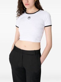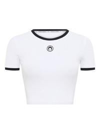 moon-logo ribbed crop top Highlights - White - Black trim - Short sleeves - Embroidered logo Imported Composition Organic Cotton 100% Washing instructions Read Manufacturer Guidelines