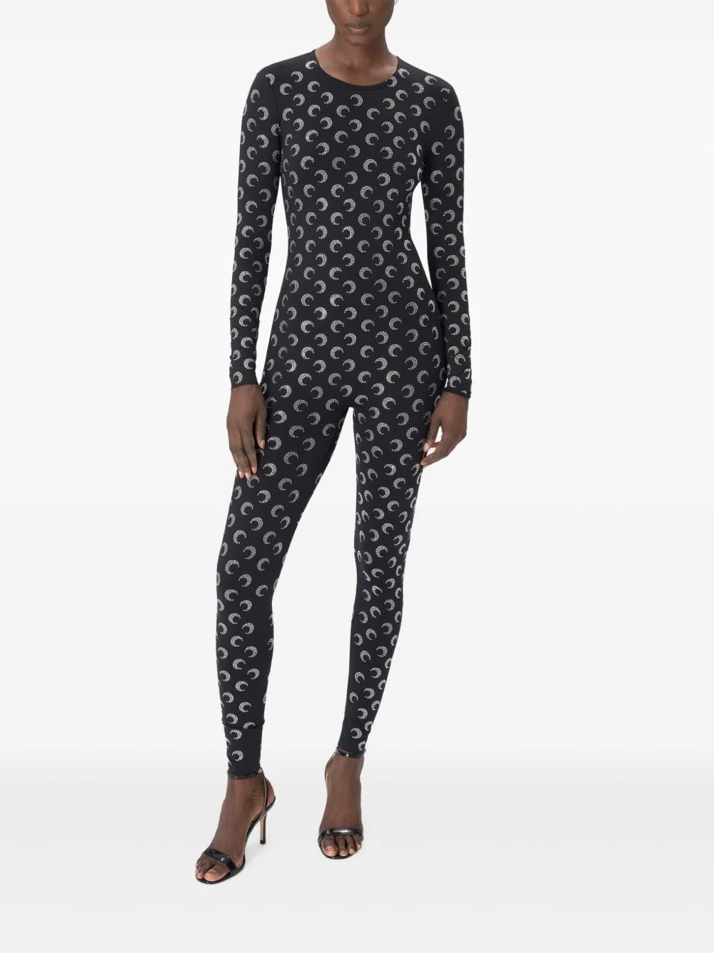 Moon-pattern jersey jumpsuit Highlights - Black - Concealed rear zip fastening - Crew neck - Long sleeves - Rhinestone embellishment Imported Composition Polyamide 88%, Elastane 12%