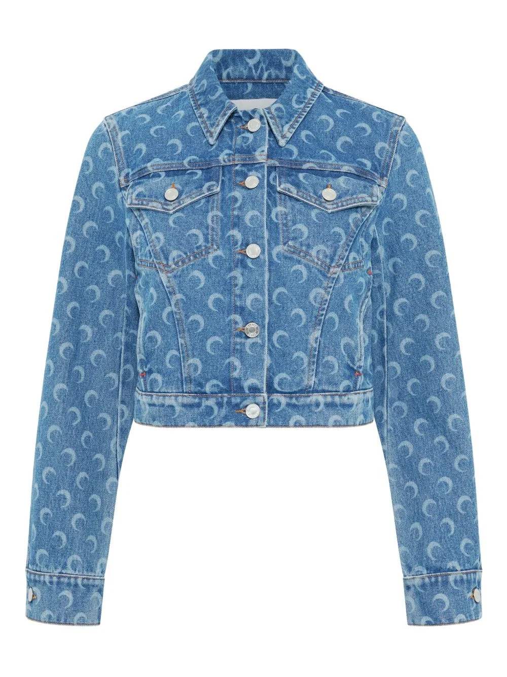 Moon-print denim jacket Highlights - Light blue - Crescent moon pattern - Button fastening - Long sleeves - Classic collar - Flap pockets - Cropped hem Made in Italy Composition Outer: Cotton 100% Washing instructions Read Manufacturer Guidelines
