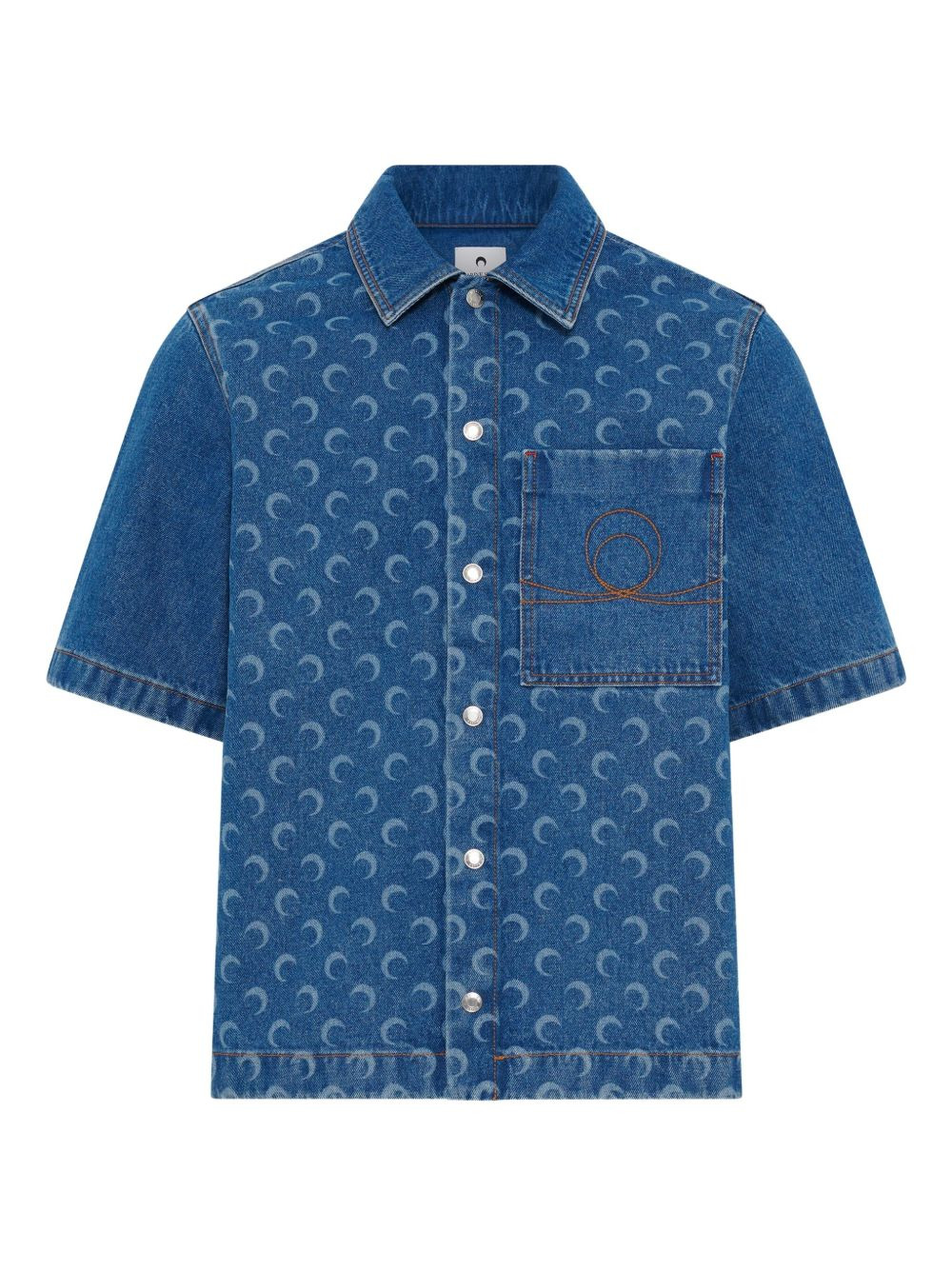 Moon-print denim shirt Highlights - Light blue - Crescent moon pattern - Short sleeves - Button fastening - Chest pocket - Embroidered logo - Straight hem - Cotton Imported Composition Outer: Cotton 100% Washing instructions Read Manufacturer Guidelines