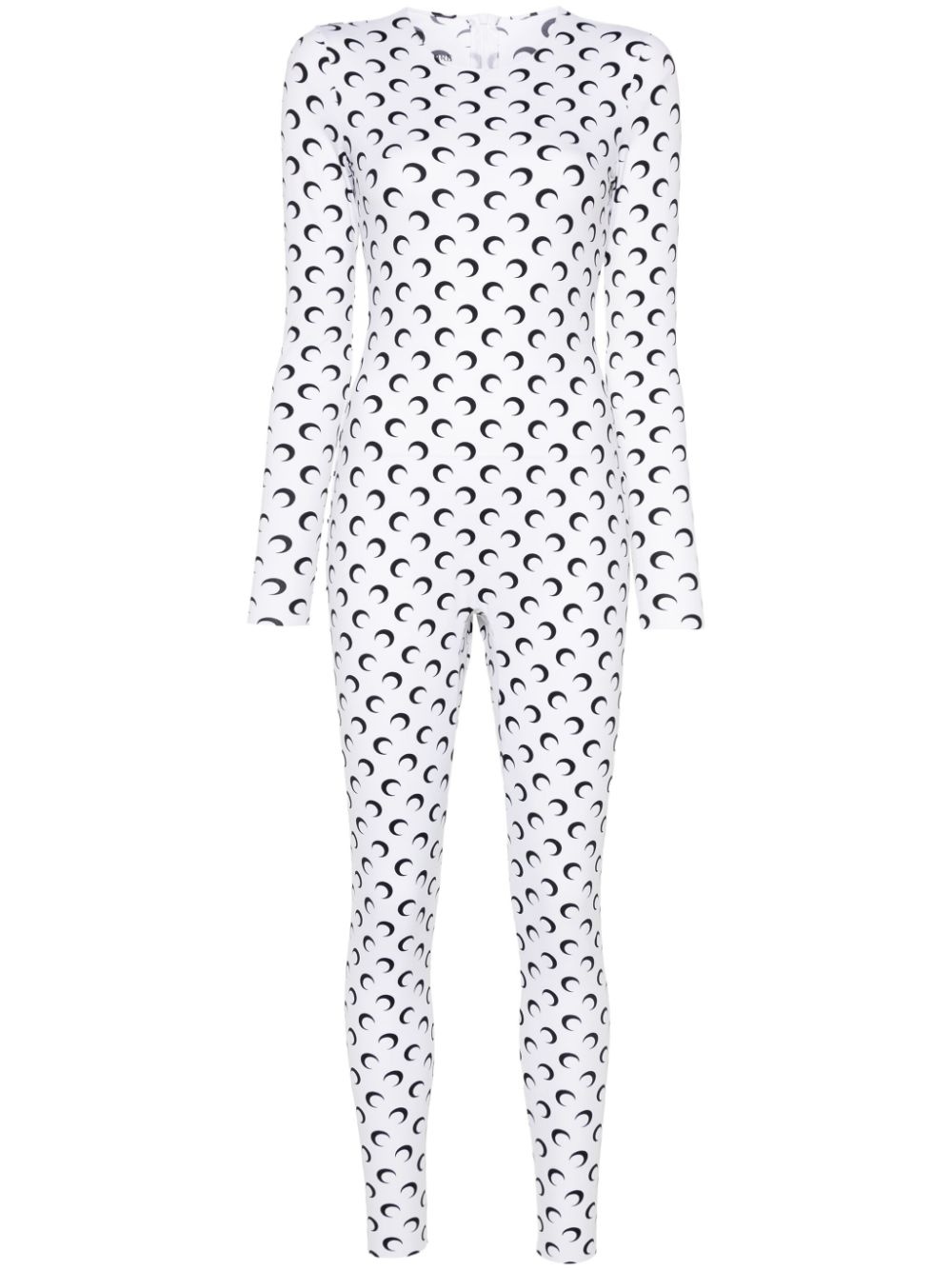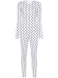moon-print jersey catsuit Marine Serre demonstrates its sense of boldness in this long-sleeved jumpsuit, boasting the brand's mystical crescent moon print for a signature finish. Highlights - White/black - Recycled polyester blend - Stretch-jersey - Signature moon print - Rear zip fastening - Round neck - Long sleeves - Fitted waistline - Straight hem - Ankle-length - Slim cut - Just a reminder that this piece must be tried on over your own garments. Imported Composition Recycled Polyester 88%, Recycled Elastane 12% SIZE & FIT Model measurements Height 5 ft 10 in(1.77 m) Bust/Chest 31.88 in(81 cm) Hips 36.22 in(92 cm) Waist 24.01 in(61 cm) FittingInformation Designed for a close fit throughout Made from a midweight stretch fabric, this piece offers elasticity and flexibility when worn