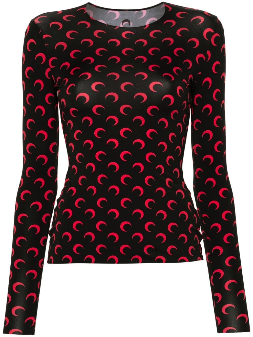 moon-print jersey T-shirt Highlights - Black/red - Recycled polyamide blend - Stretch-jersey - Signature moon print - Crew neck - Long sleeves - Straight hem Imported Composition Recycled Polyamide 88%, Recycled Elastane 12% SIZE & FIT Model measurements Height 5 ft 9 in(1.75 m) Bust/Chest 31.88 in(81 cm) Hips 34.64 in(88 cm) Waist 24.01 in(61 cm) FittingInformation Designed for a close fit throughout Made from a lightweight stretch fabric, this piece offers elasticity and flexibility when worn Measurement BUST 27.55 in(70 cm) LENGTH 22.83 in(58 cm) SLEEVE LENGTH 22.83 in(58 cm) Shoulder Width 11.41 in(29 cm)