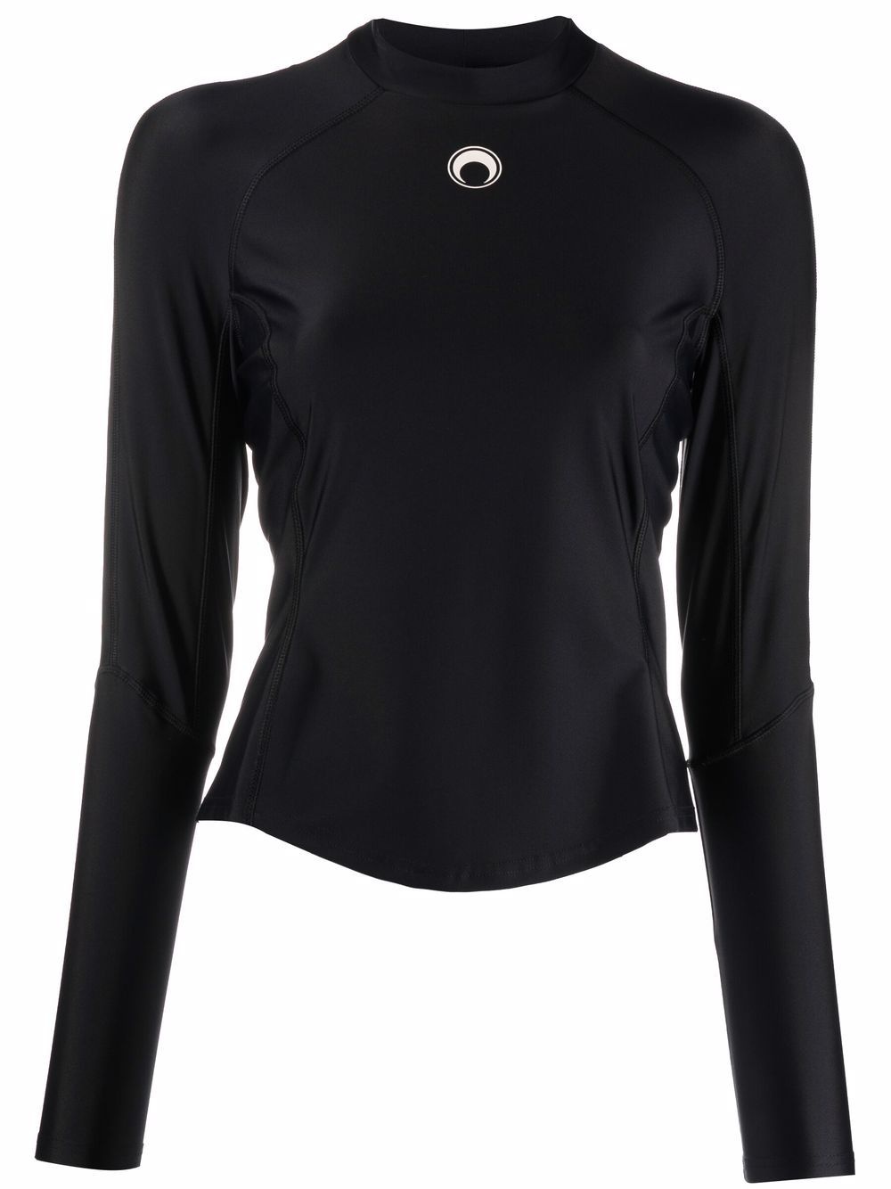 moon-print training top Combining a sporty aesthetic, a sustainable outlook and futuristic designs, Marine Serre presents pieces like this black training top. The long-sleeved piece is made from stretch-recycled nylon and is detailed with a signature crescent moon print at the chest. Highlights - Black - Recycled polyamide-blend - Logo print to the front - Mock neck - Long sleeves - Stretch-design Imported Composition Recycled Polyamide 78%, Spandex/Elastane 22% SIZE & FIT Model measurements Height 5 ft 9 in(1.74 m) Bust/Chest 32.28 in(82 cm) Hips 35.82 in(91 cm) Waist 24.01 in(61 cm) FittingInformation This piece fits true to size. We recommend you get your regular size Cut for a slim fit Made with a mid-weight stretch fabric Washing instructions Machine Wash