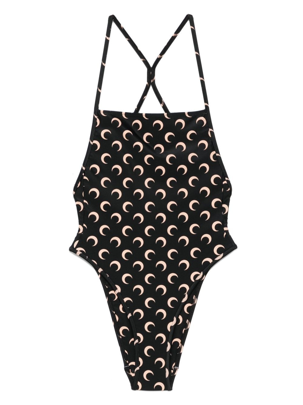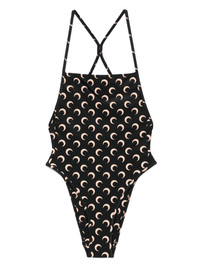 moon-printed swimsuit Highlights - Black - Full lining - Square neck - Rear criss-cross straps - Be mindful to try on swimwear over your own garments. Made in Italy Composition Recycled Polyamide 78%, Spandex/Elastane 22%