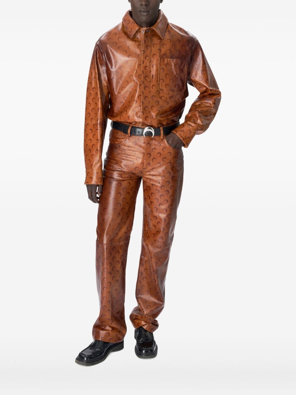 Moon shirt Highlights - Chestnut brown - Front button fastening - Buttoned cuffs - Chest patch pocket - Logo patch to the rear Made in Italy Composition Lining: Viscose 100% Outer: CALFSKIN 100% Washing instructions Read Manufacturer Guidelines