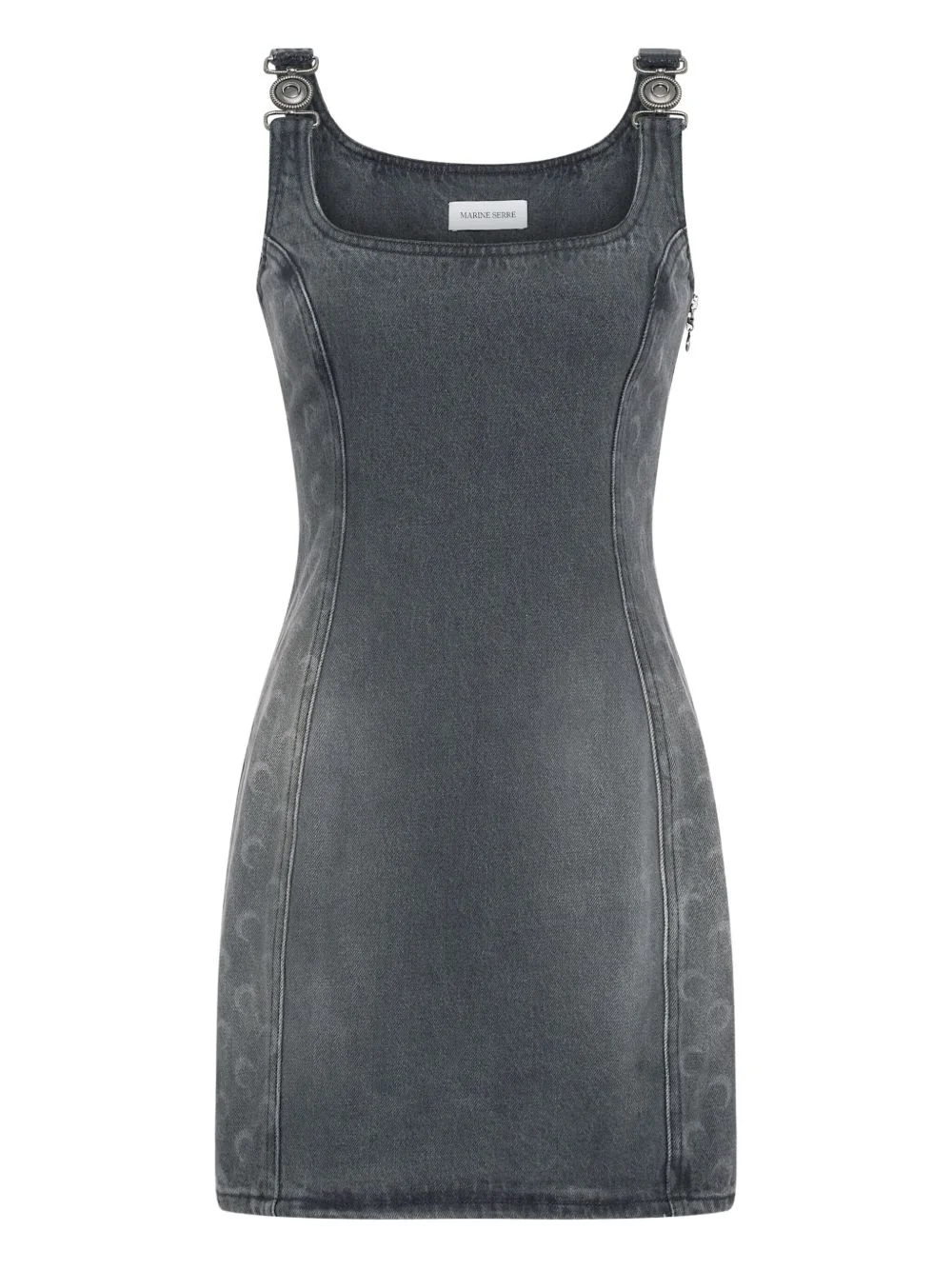 Moon sleeveless denim dress Highlights - Dark grey - Moon print - Sleeveless - Chain detail - Square neck - Side zip fastening - Washed denim - Mini length Made In Italy Composition Cotton 100% SIZE & FIT Measurement BUST 34.64 in(88 cm) HIPS 37.79 in(96 cm) WAIST 27.16 in(69 cm) Washing instructions Read Manufacturer Guidelines