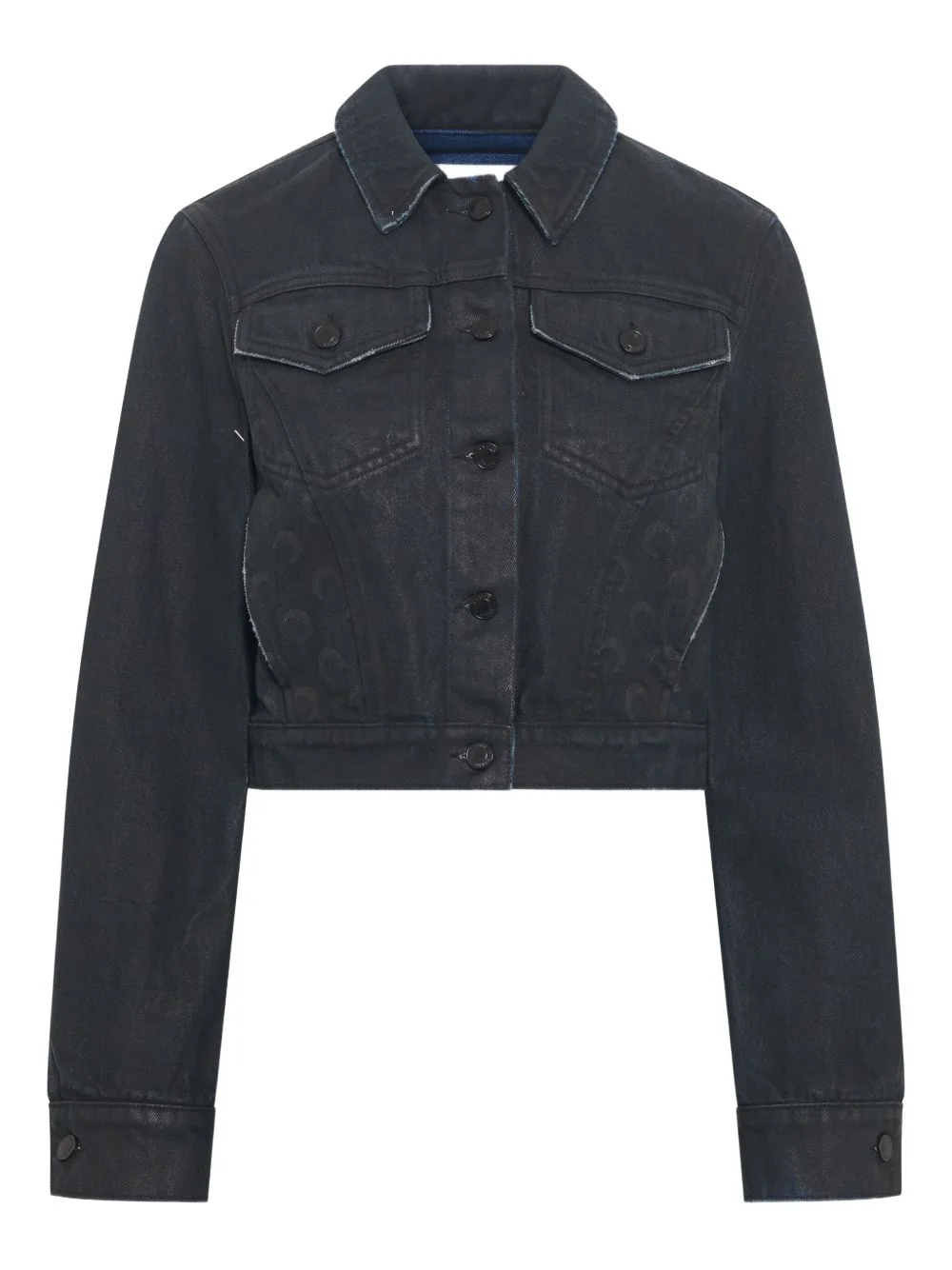 Moon waxed denim jacket Highlights - Black - Moon pattern - Button fastening - Chest flap pockets - Long sleeves - Buttoned cuffs - Cropped hem Made in Italy Composition Cotton 100% SIZE & FIT Measurement BUST 34.64 in(88 cm) HIPS 37.79 in(96 cm) WAIST 27.16 in(69 cm) Washing instructions Read Manufacturer Guidelines