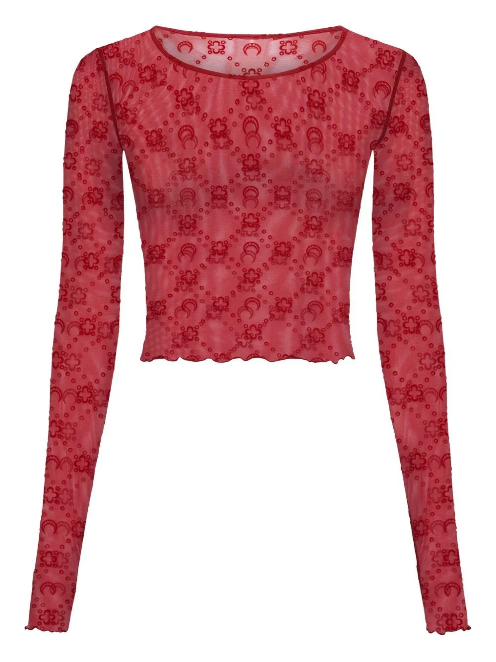 moonogram cropped top Highlights - Ribbon red - Long sleeves - Crew neck - Scalloped hem Made in France Composition Mesh 100% Washing instructions Read Manufacturer Guidelines
