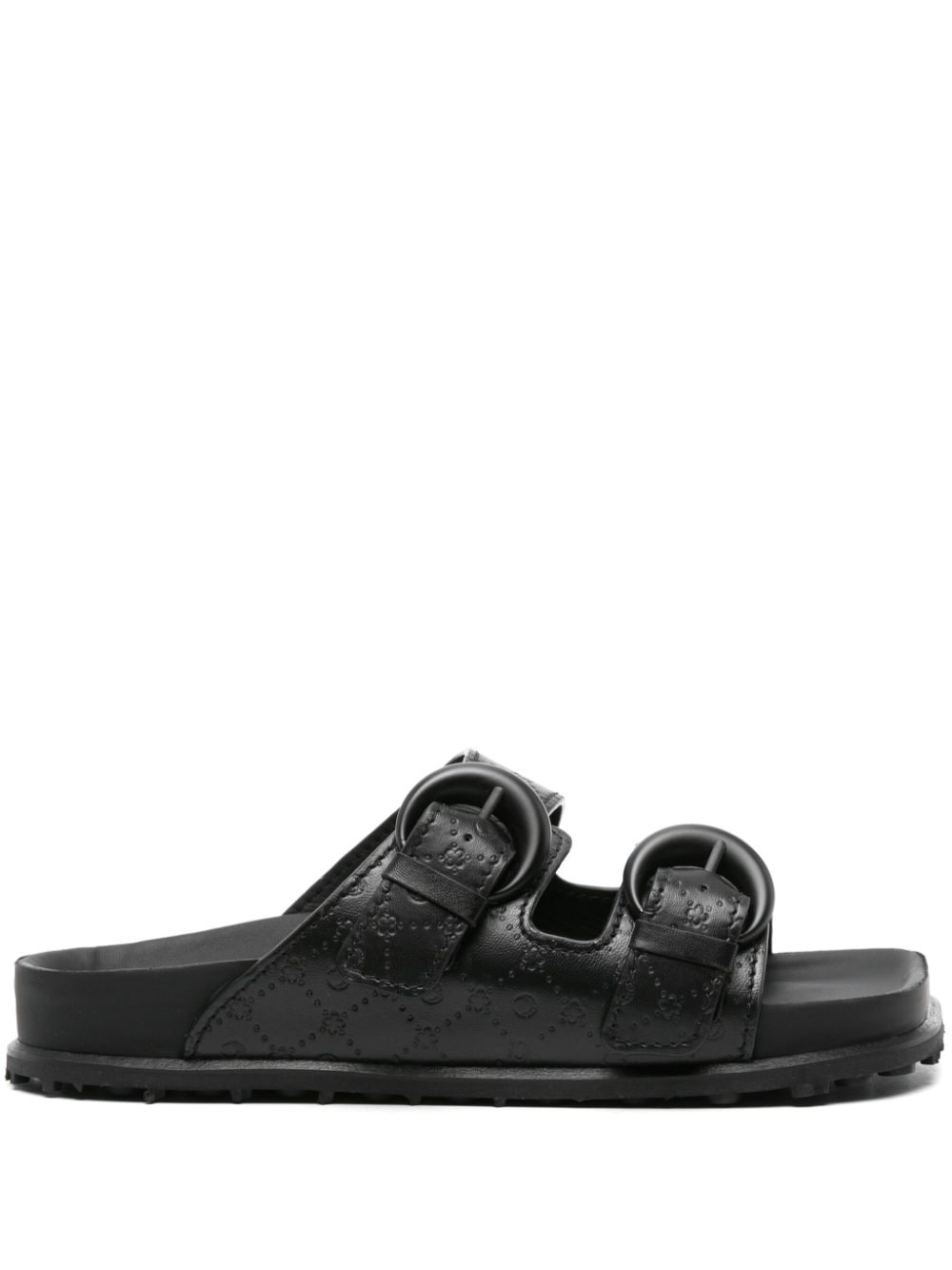 Moonogram-embossed leather slides