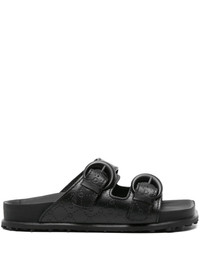 Moonogram-embossed leather slides Highlights - Black - Lambskin - Smooth grain - Double-strap design - Signature embossed moonogram pattern - Double logo-buckle fastening - Square open toe - Moulded footbed - Branded leather footbed - Flat rubber sole - Tonal hardware - Slip-on style - This piece comes complete with a protective dust bag. Imported Composition Lining: Calf Leather 100% Outer: Lamb Skin 100% Sole: Rubber 100% SIZE & FIT Measurement HEEL 1.18 in(3 cm) Sole height 0.78 in(2 cm)