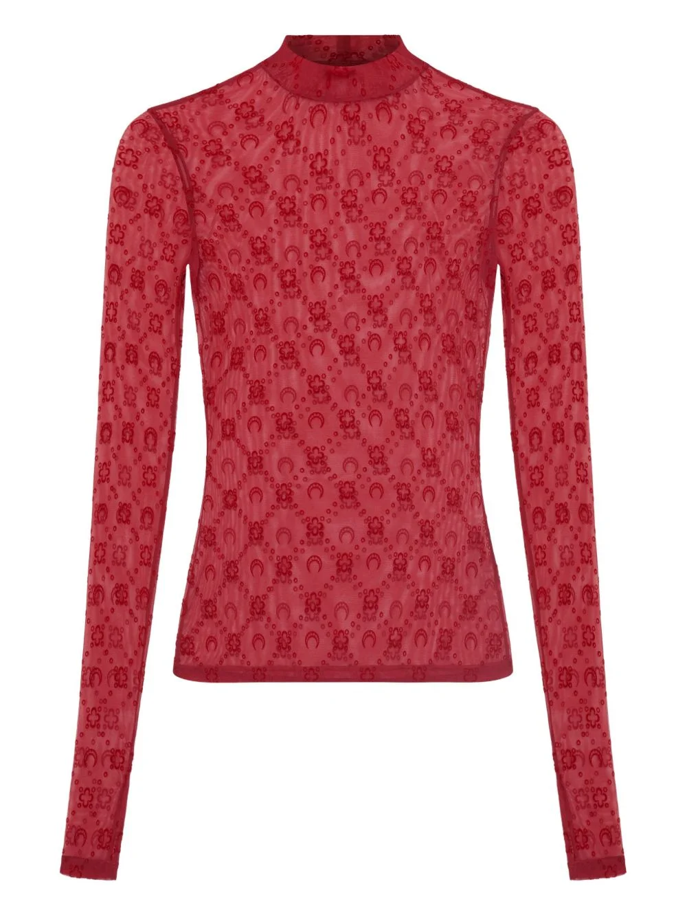 moonogram high-neck top Highlights - Red - Mesh - Long sleeves - High neck Made in France Composition Polyamide 86%, Elastane 14% Washing instructions Read Manufacturer Guidelines