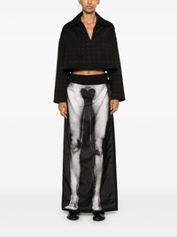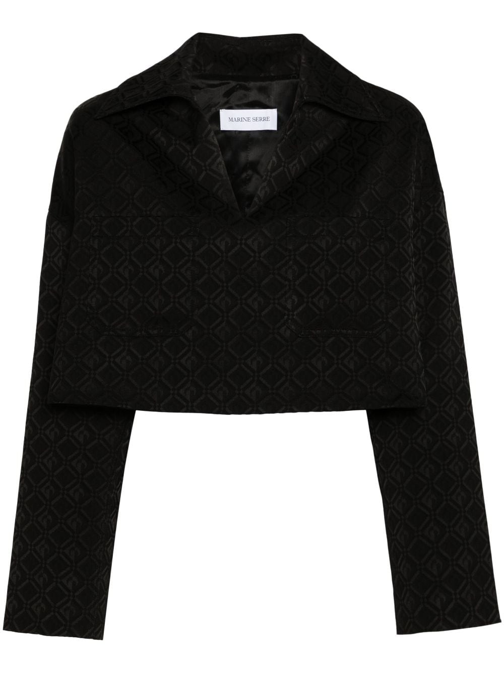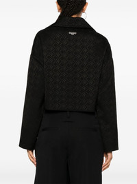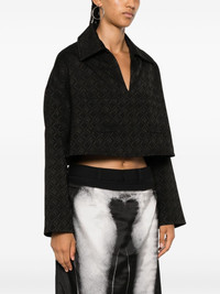 Moonogram jacquard top Highlights - Black - Signature moonogram pattern - Full jacquard - Polo collar - V-neck - Long sleeves - Two chest patch pockets - Unlined - Straight hem - Cropped Made in Italy Composition Outer: Viscose 79%, Wool 20%, Elastane 1% Lining: Viscose 100% SIZE & FIT Model measurements Height 5 ft 10 in(1.77 m) Bust/Chest 31.88 in(81 cm) Hips 36.22 in(92 cm) Waist 24.01 in(61 cm) FittingInformation Designed to be unstructured, offering a loose fit throughout Cropped in length Made from a midweight fabric
