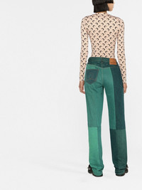 Moonogram straight-leg jeans Marine Serre presents these straight-leg denim jeans in line with their distinctive vision and unique design approach. Delivered in a combination of green tones, the pair's patchwork construction features the brand's Moonogram print, a pattern constructed from their signature crescent moon motif, an emblem that has become a key identifier for the brand. Imported Composition Lining: Cotton 100% Outer: Cotton 100% SIZE & FIT Model measurements Height 5 ft 10 in(1.77 m) Bust/Chest 32.67 in(83 cm) Hips 35.43 in(90 cm) Waist 23.62 in(60 cm) FittingInformation This piece fits true to size. We recommend you get your regular size Designed to be fitted at the waist and hips, loose over the leg Made with a mid-weight non-stretch fabric Washing instructions Dry Clean Only