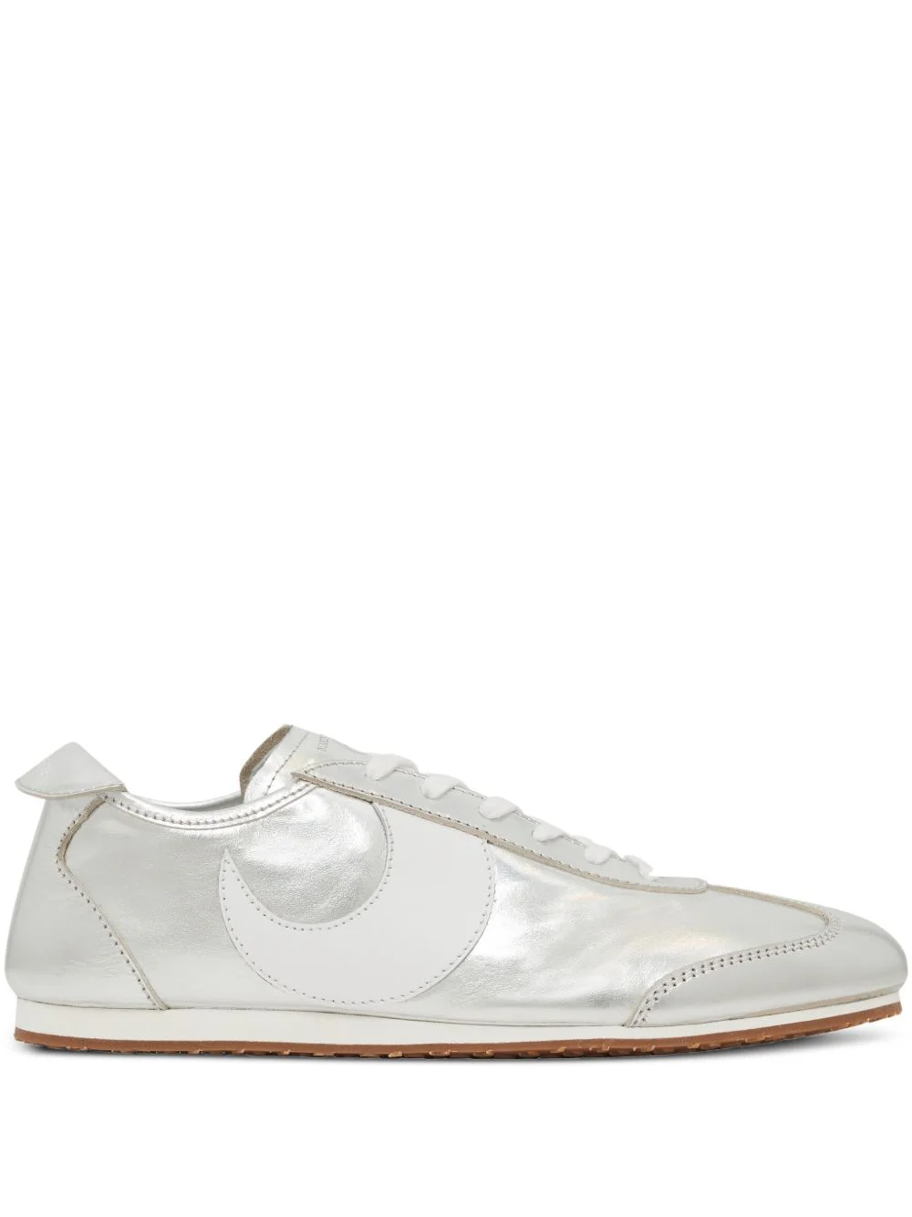 MS Astra metallic-effect leather sneakers Highlights - Grey - Leather - Logo detail - Lace-up fastening - Almond toe - Flat sole Made in Italy Composition Outer: Calf Leather 100% Lining: Calf Leather 100% Sole: Rubber 100%