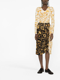 Ornament Moon-print long-sleeve top Unapologetic prints, abstract designs and fluid silhouettes continue to underpin Marine Serre's dynamic design vision, as evidenced by this vibrant top. Crafted from the brand's signature crepe jersey, it's elevated by an all-over chain pattern. Imported Composition Viscose 93%, Spandex/Elastane 7% SIZE & FIT Model measurements Height 5 ft 10 in(1.79 m) Bust/Chest 31.1 in(79 cm) Hips 35.03 in(89 cm) Waist 24.01 in(61 cm) FittingInformation This piece fits true to size. We recommend you get your regular size Cut for a slim fit Made with a mid-weight fabric Washing instructions Machine Wash