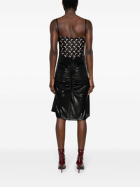 panelled draped minidress Highlights - Black - Stretch-jersey - Panelled design - Metallic sheen - Ruched detailing - Crescent moon print - Draped design - Cowl neck - Concealed side zip fastening - Spaghetti straps - High-low hem - Above-knee length - Unlined Imported Composition Polyester 100%, Polyamide 78%, Elastane 22% SIZE & FIT Model measurements Height 5 ft 10 in(1.77 m) Bust/Chest 32.28 in(82 cm) Hips 35.03 in(89 cm) Waist 25.19 in(64 cm) FittingInformation Designed for a slim fit that sits just away from the body offering a close yet comfortable fit Made from a midweight stretch fabric, this piece offers elasticity and flexibility when worn This piece fits true to size – take your usual size