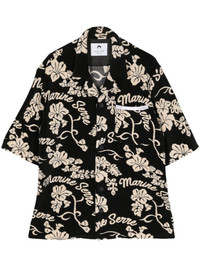 patterned-jacquard terry-cloth shirt Highlights - Black/light beige - Terry-cloth effect - Patterned jacquard - Jacquard logo motif - Floral motif - Notched collar - Front button fastening - Short sleeves - Chest patch pocket - Straight hem Made in Italy Composition Outer: Polyester 43%, Cotton 42%, Polyamide 15% Lining: Viscose 100%