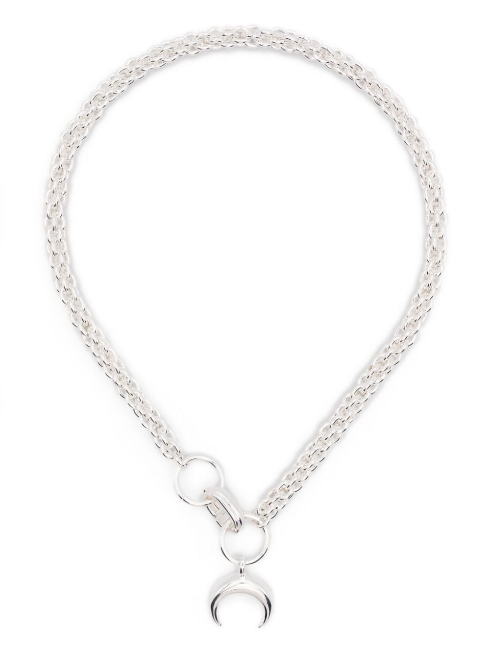 Recycled Pewter Moon necklace Highlights - Silver-tone - Polished finish - Moon pendant - Clasp fastening - Braided chain Made in France SIZE & FIT Measurement Length when open 15.74 in(40 cm) PENDANT LENGTH 1.18 in(3 cm) PENDANT WIDTH 0.59 in(1.5 cm) WIDTH 0.19 in(0.5 cm)