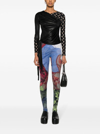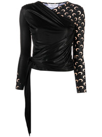 Regenerated crescent moon-print top Upcycling is at the centre of Marine Serre's design process, exemplified by this top. Made from regenerated jersey, it boasts a one-of-a-kind draped construction combining lustrous black and crescent moon-print panels, evoking a DIY aesthetic with depth and dimension. Highlights - Black - Jersey texture - Crescent moon print - Draped design - V-neck - Long sleeves - Asymmetric hem Imported Composition Body: Viscose 100% Lining: Polyamide 78% SIZE & FIT Model measurements Height 5 ft 10 in(1.77 m) Bust/Chest 33.07 in(84 cm) Hips 37 in(94 cm) Waist 24.8 in(63 cm) FittingInformation Designed for a close fit throughout Made from a lightweight stretch fabric, this piece offers elasticity and flexibility when worn This piece fits true to size – take your usual size Washing instructions Dry Clean Only