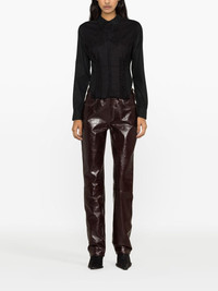 Regenerated Household corset shirt Marine Serre's Regenerated Household line takes upcycled pillowcases and transforms them into 'unique, transcending garments' that speak to the brand's irreverent aesthetic. From the range, this black cotton shirt is defined by lace-up details and embroidery reminiscent of corsetry. Highlights - Black - Cotton - Embroidered design - Classic collar - Front button fastening - Corset style - Long sleeves - Buttoned cuffs - Asymmetric hem Imported Composition Cotton 100%, Acetate 64%, Viscose 35%, Elastane 1% SIZE & FIT Model measurements Height 5 ft 10 in(1.78 m) Bust/Chest 31.49 in(80 cm) Hips 35.03 in(89 cm) Waist 23.62 in(60 cm) FittingInformation Designed for a slim fit that sits just away from the body offering a close yet comfortable fit The adjustable drawstring means that you can adjust this piece’s fit to suit your comfort and preference Made from a midweight non-stretch fabric, this piece offers minimal elasticity when worn This piece fits true to size – take your usual size Washing instructions Hand Wash