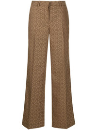 Regenerated Moon Diamant tailored trousers Marine Serre's iconic Moon Diamant pattern is the focus of these straight-leg tailored trousers. The signature motif is rendered as a jacquard design in a dark-brown hue and symbolises the brand’s principles of hybridity and transformation. Highlights - Light brown - Recycled polyester blend - Jacquard - Elasticated waistband - Two side inset pockets - Straight leg - This product is crafted from upcycled materials so the one you receive will differ from the item pictured. Imported Composition Outer: Recycled Polyester 53%, Wool 43%, Elastane 2% Lining: Viscose 100% SIZE & FIT Model measurements Height 5 ft 10 in(1.79 m) Bust/Chest 31.1 in(79 cm) Hips 35.03 in(89 cm) Waist 24.01 in(61 cm) FittingInformation Designed for a straight-leg fit, these trousers allow for a close fit at the waist and an unrestricted, comfortable fit over the leg Made from a midweight stretch fabric, this piece offers elasticity and flexibility when worn This piece fits true to size – take your usual size Washing instructions Dry Clean Only