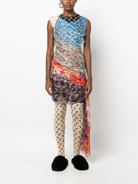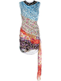 Regenerated Scarves silk minidress This Marine Serre minidress is crafted from regenerated silk scarves, each adorned with a vibrant print that creates a bold patchwork motif. It's cut to a sculpting, close silhouette and detailed with a draped sash. Highlights - Multicolour - Silk - Patchwork pattern print - Gathered detailing - Sash detail - Crew neck - Sleeveless - Asymmetric hem - This product is crafted from upcycled materials so the one you receive may differ slightly from the item pictured. Made in France Composition Lining: Recycled Polyamide 78%, Elastane 22% Outer: Silk 100% SIZE & FIT Model measurements Height 5 ft 10 in(1.77 m) Bust/Chest 34.64 in(88 cm) Hips 35.43 in(90 cm) Waist 24.8 in(63 cm) FittingInformation Designed for a slim fit that sits just away from the body offering a close yet comfortable fit Made from a midweight stretch fabric, this piece offers elasticity and flexibility when worn This piece fits true to size – take your usual size Measurement HIPS 27.99 in(71.1 cm) LENGTH 35.98 in(91.4 cm) WAIST 24.01 in(61 cm) BUST 30 in(76.2 cm) Washing instructions Dry Clean Only