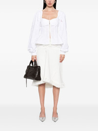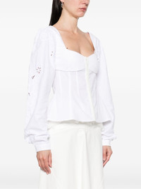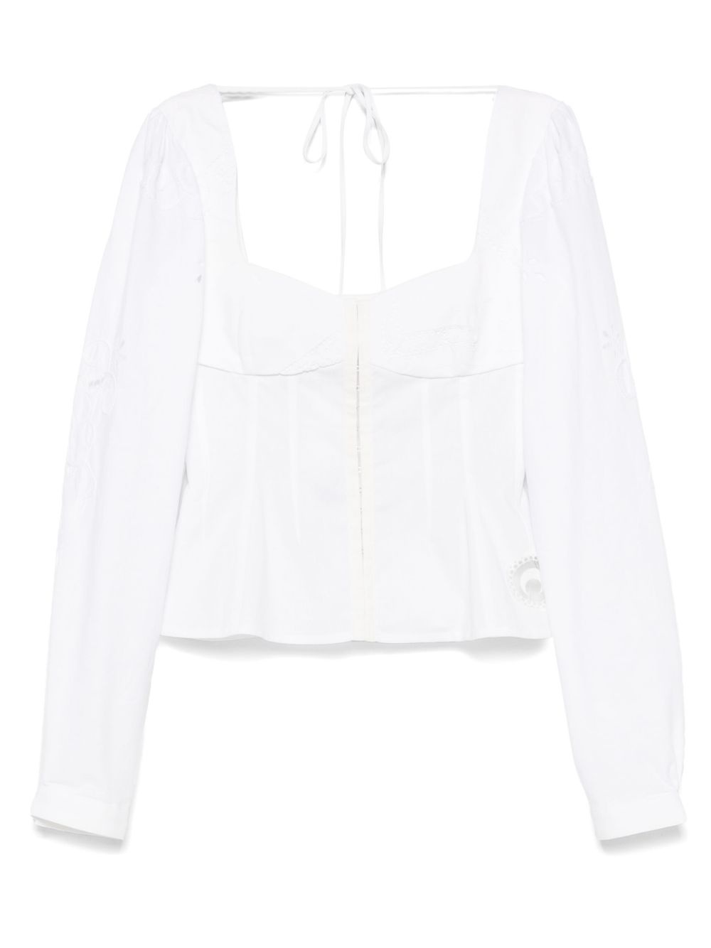 Regenerated shirt Highlights - White - Front hook and eye fastening - Rear tie fastening - Buttoned-cuff sleeves - Sweetheart neck Imported Composition Cotton 100% SIZE & FIT Model measurements Height 5 ft 10 in(1.78 m) Bust/Chest 33.46 in(85 cm) Hips 36.22 in(92 cm) Waist 23.22 in(59 cm) FittingInformation Designed for a slim fit that sits just away from the body offering a close yet comfortable fit The tie fastening gives an adaptable and personalised fit Made from a midweight non-stretch fabric
