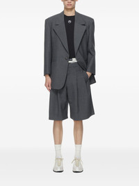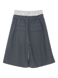 regenerated tailored shorts Highlights - Charcoal grey - Elasticated waistband - Belt loops - Pressed crease Made in Italy Composition Outer: Polyester 55%, RWS Wool 42%, Elastane 3% Lining: Viscose 100%