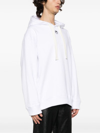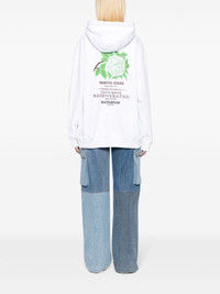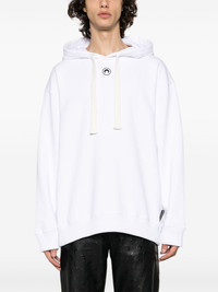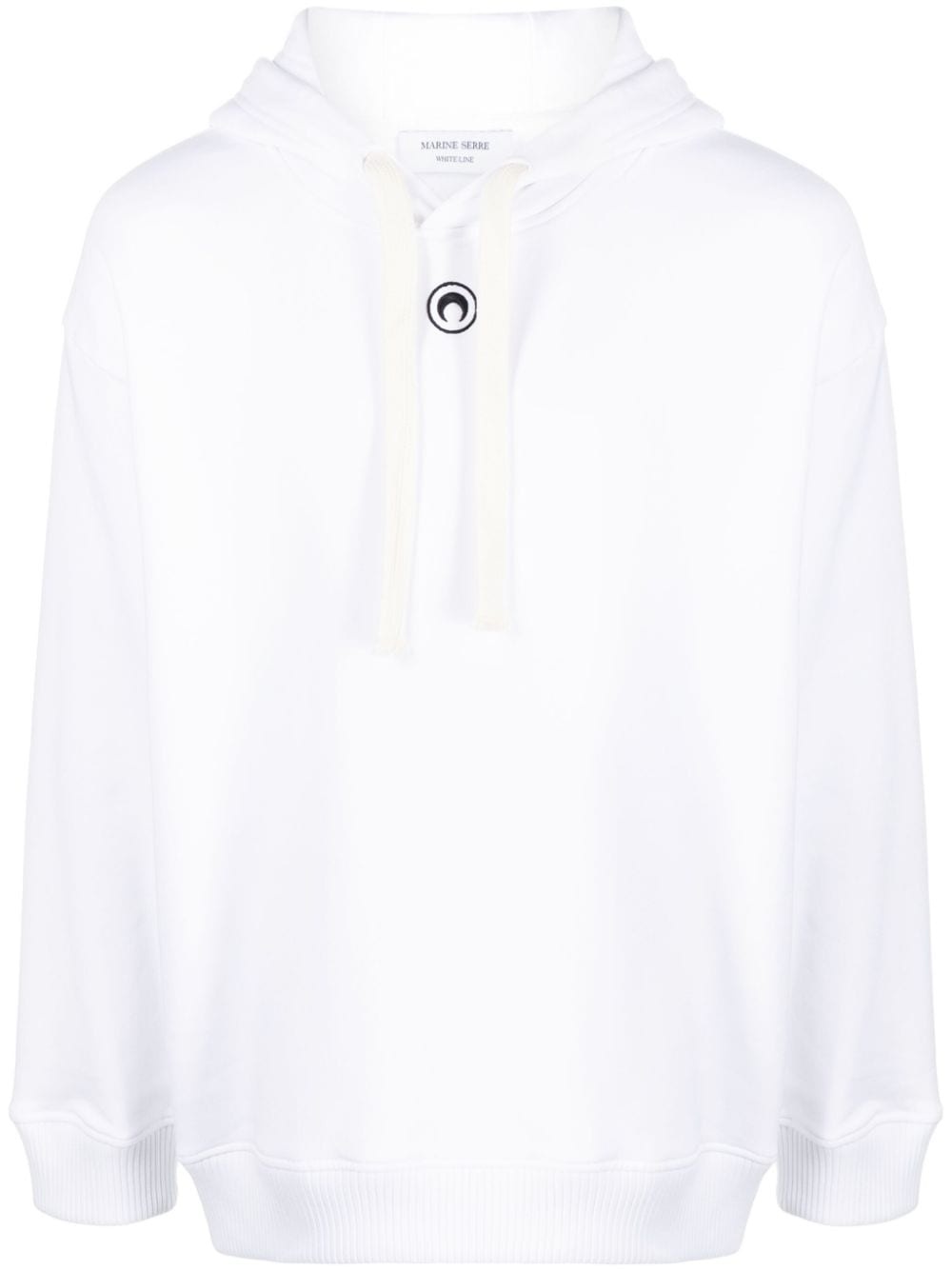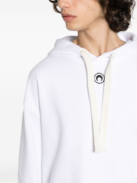 Regenerated Tote Bag cotton hoodie Marine Serre's sustainable concern is usually evident in its use of upcycled materials. A good example is this cotton hoodie made using upcycled tote bags, as shown in the graphic on the back. Highlights - White - Cotton - Crescent moon print - Graphic print to the rear - Drawstring hood - Drop shoulder - Long sleeves - Ribbed cuffs and hem - When buying this unisex item, keep in mind that it is graded in standard men's sizing. Imported Composition Cotton 100% SIZE & FIT Model measurements Height 5 ft 10 in(1.79 m) Bust/Chest 31.1 in(79 cm) Hips 35.03 in(89 cm) Waist 23.62 in(60 cm) Measurement SLEEVE LENGTH 22.04 in(56 cm) LENGTH 26.77 in(68 cm) BUST 47.24 in(120 cm) Shoulder Width 22.83 in(58 cm) FittingInformation This piece is unisex – if you usually select men's sizing expect a loose fit throughout; if you usually select women's sizes, expect an oversized fit Made from a midweight non-stretch fabric, this piece offers minimal elasticity when worn