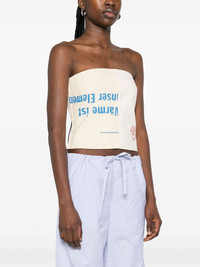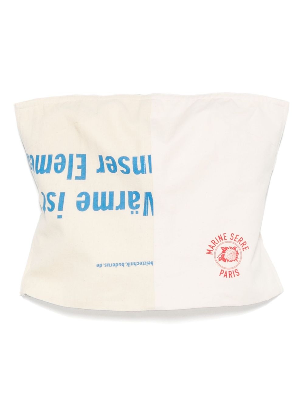 Regenerated Tote Bags top Highlights - Ecru - Rear zip fastening - Bandeau style - Cropped - This print was created to be entirely unique and might differ slightly from the item pictured. Made in France Composition Lining: Cotton 100% Outer: Cotton 100%, Recycled Polyamide 78%, Elastane 22% SIZE & FIT Model measurements Height 5 ft 11 in(1.8 m) Bust/Chest 32.67 in(83 cm) Hips 36.22 in(92 cm) Waist 24.4 in(62 cm) FittingInformation Designed for a close fit throughout Made from a midweight fabric