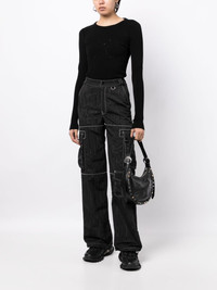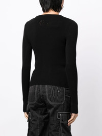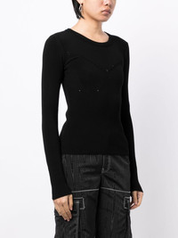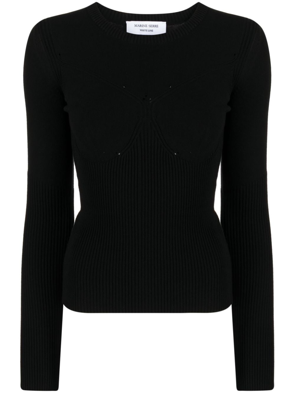 ribbed-knit long-sleeved top In a classic long-sleeve silhouette, this ribbed top by Marine Serre is adorned with delicate pointelle accents. The iconic crescent moon motif elevates its back. Highlights - Black - Ribbed knit - Crescent moon motif - Perforated detailing - Round neck - Long sleeves - Straight hem Imported Composition Viscose 70%, Polyester 30% SIZE & FIT Model measurements Height 5 ft 10 in(1.77 m) Bust/Chest 31.49 in(80 cm) Hips 35.43 in(90 cm) Waist 25.19 in(64 cm) FittingInformation Designed for a close fit throughout Constructed with additional length on the sleeve Made with a midweight knit, this piece offers some stretch This piece fits true to size – take your usual size Washing instructions Dry Clean Only
