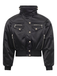 satin bomber jacket Highlights - Black - Press-stud and zip fastening - High neck - Long sleeves - Multiple zip pockets - Ribbed hem - Ribbed cuffs - Cropped design Made in Italy Composition Polyamide 52%, Polyester 40%, Polyurethane 8% SIZE & FIT Measurement CHEST 38.58 in(98 cm) WAIST 32.28 in(82 cm) Washing instructions Read Manufacturer Guidelines