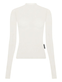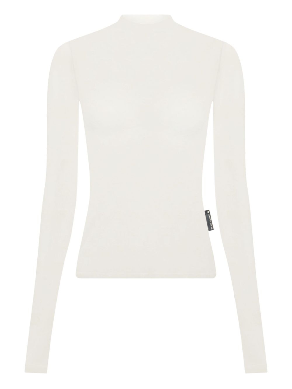 semi-sheer top Highlights - White - Mock neck - Long sleeves - Straight hem Made in France Composition Recycled Polyamide 86%, Elastane 14%