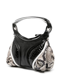 small Futura shoulder bag Marine Serre offers a retro-inspired accessory with the mini Futura tote bag. Its mixed-media design juxtaposes panels of crocodile-embossed and snakeskin-print leather alongside signature branding in the form of the iconic Crescent Moon. The compact silhouette and fixed handle remind of '90s styles. Highlights - Black - Lambskin - Snakeskin effect - Panelled design - Embossed crescent moon motif - Single top handle - Top zip fastening - Main compartment Imported Composition Outer: Lambskin 100%, Goat Skin 100% Lining: Polyester 100% SIZE & FIT Model measurements Height 5 ft 10 in(1.78 m) Bust/Chest 33.07 in(84 cm) Hips 36.61 in(93 cm) Waist 24.8 in(63 cm) Measurement DEPTH 3.14 in(8 cm) HANDLE 4.72 in(12 cm) HEIGHT 5.11 in(13 cm) STRAP 20.07 in(51 cm) WIDTH 10.62 in(27 cm)